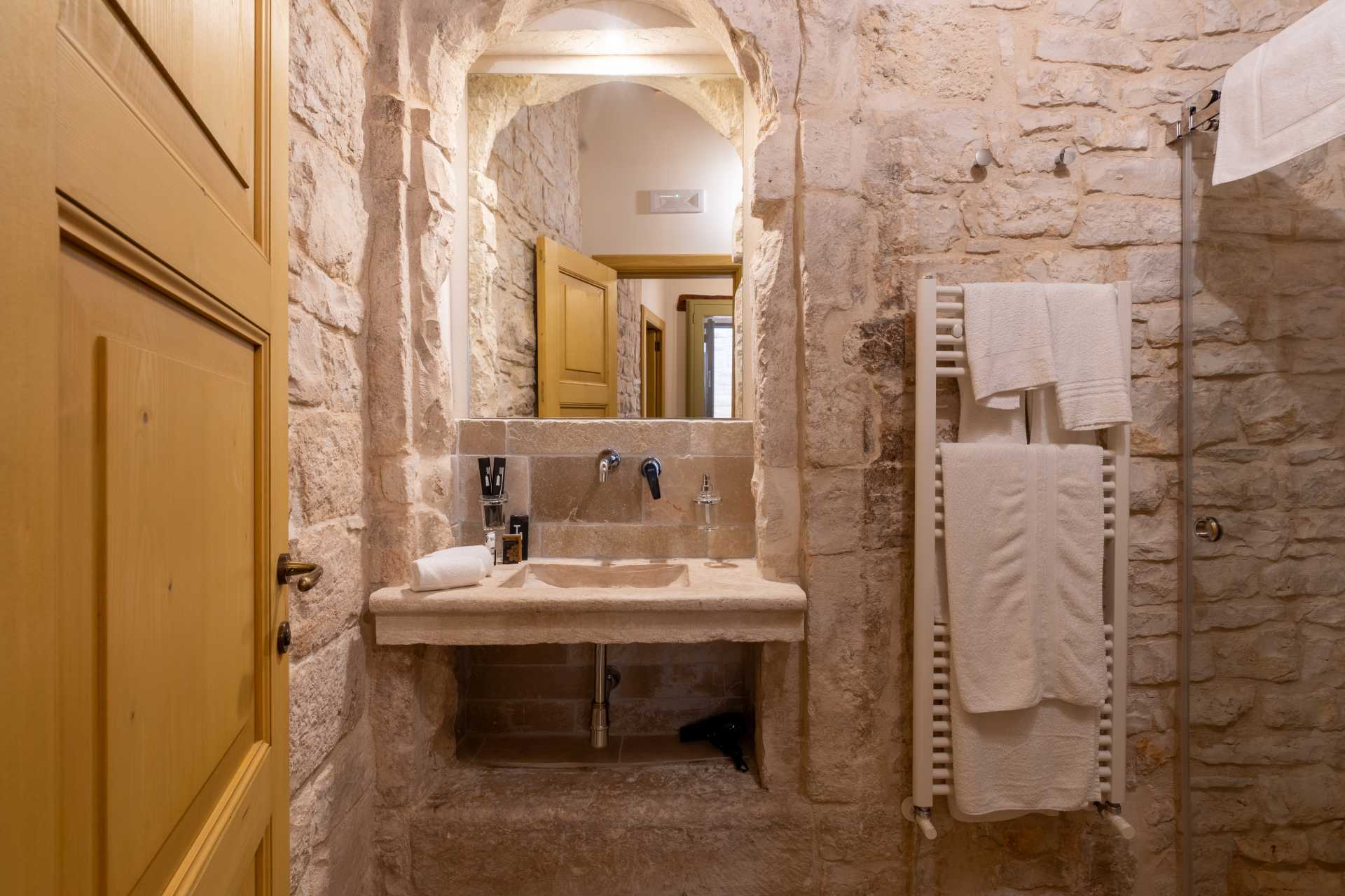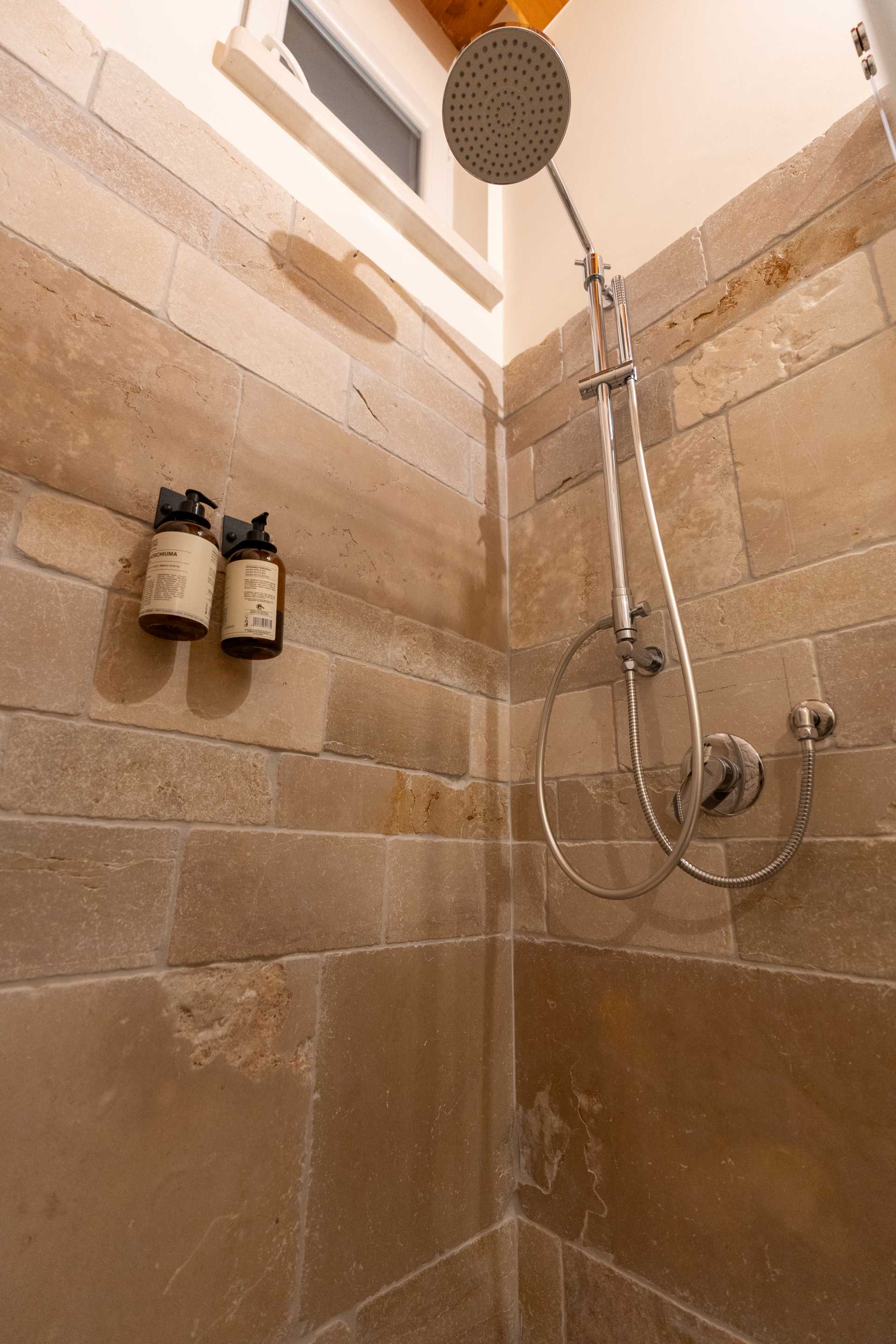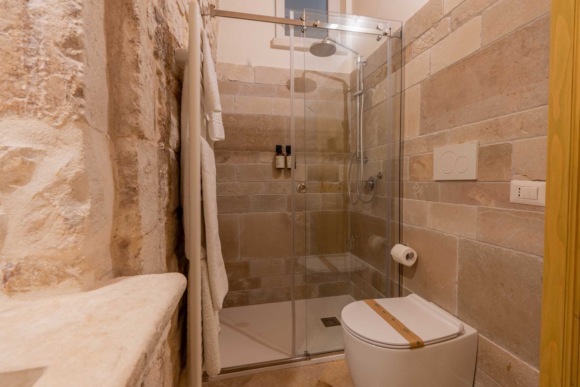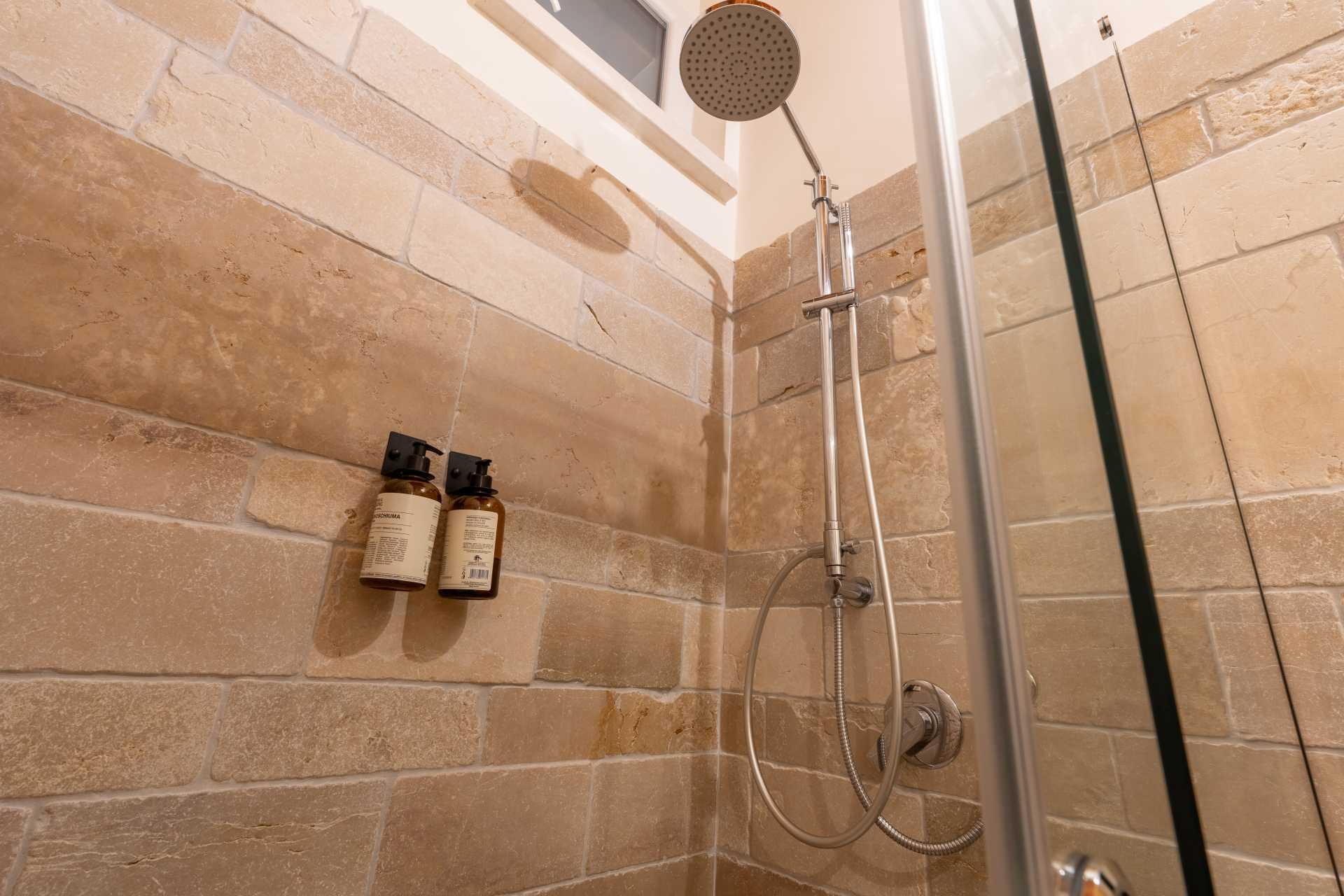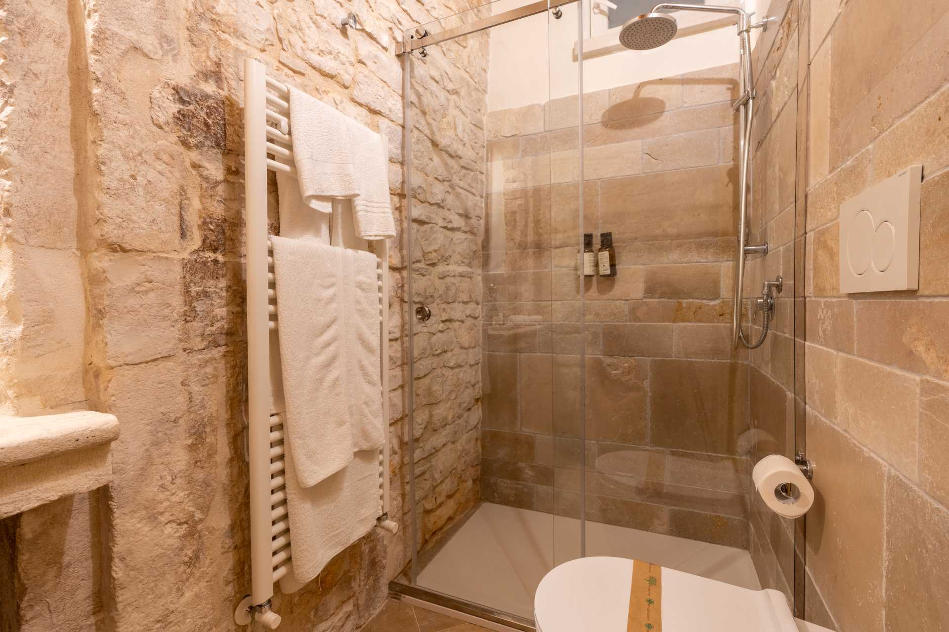 Camera matrimoniale dotata di set di cortesia e bagno privato con doccia, asciugacapelli, set bagno in spugna.